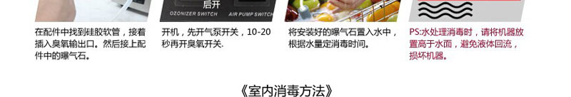 4:禁止將臭氧機(jī)放在消毒區(qū)內(nèi)工作,為了工作的安全,設(shè)備應(yīng)有單獨(dú)工作區(qū),再用硅膠管將臭氧氣體輸送到消毒或化學(xué)反應(yīng)區(qū)。